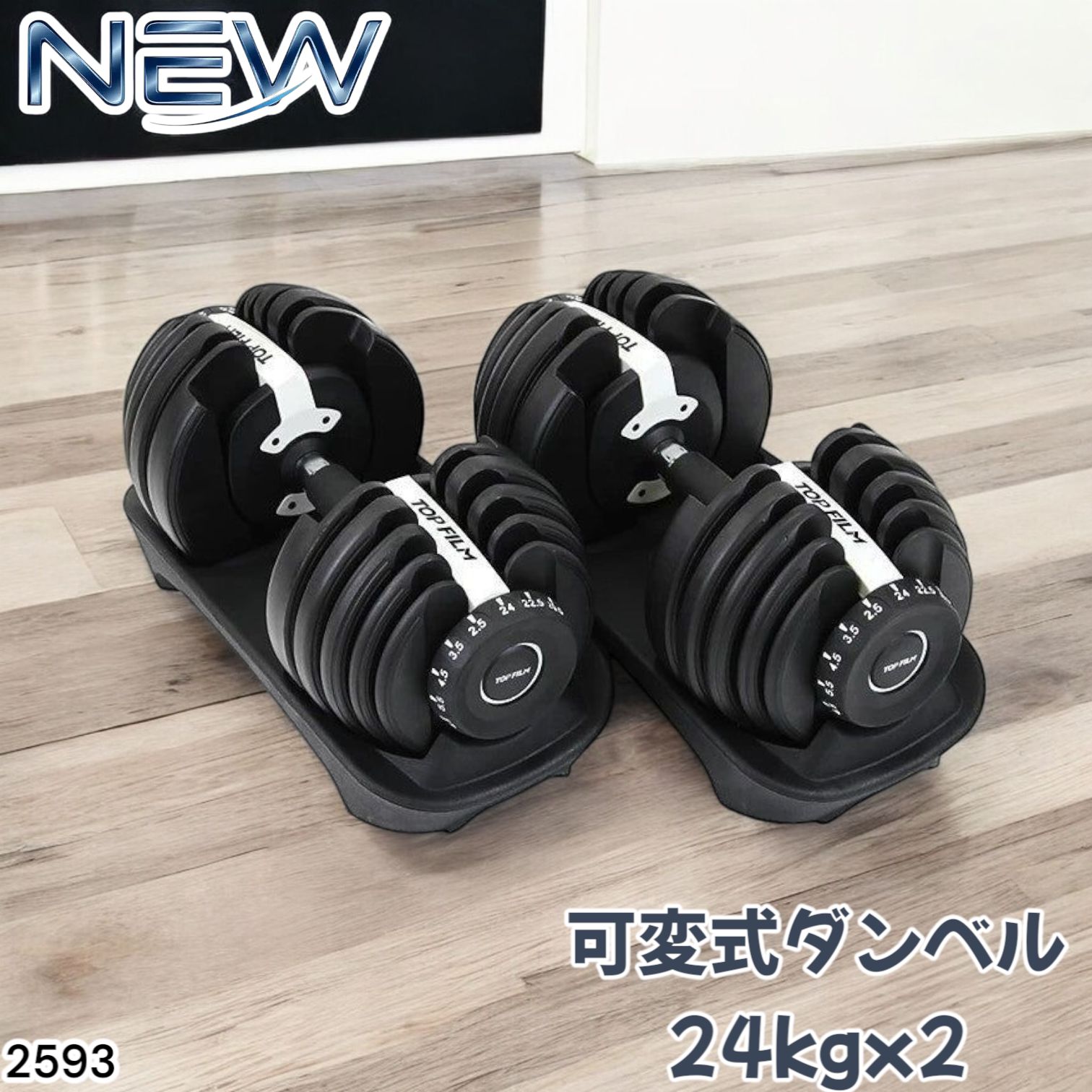 2593 ダンベル 可変式 24 kg ホワイト セット 総重量48 2秒で重量変化 2.5 15段階調節 分かりやすいキロ表示 鉄アレイ 安全設計 省スペース 収納 一部地域 別途配送料有