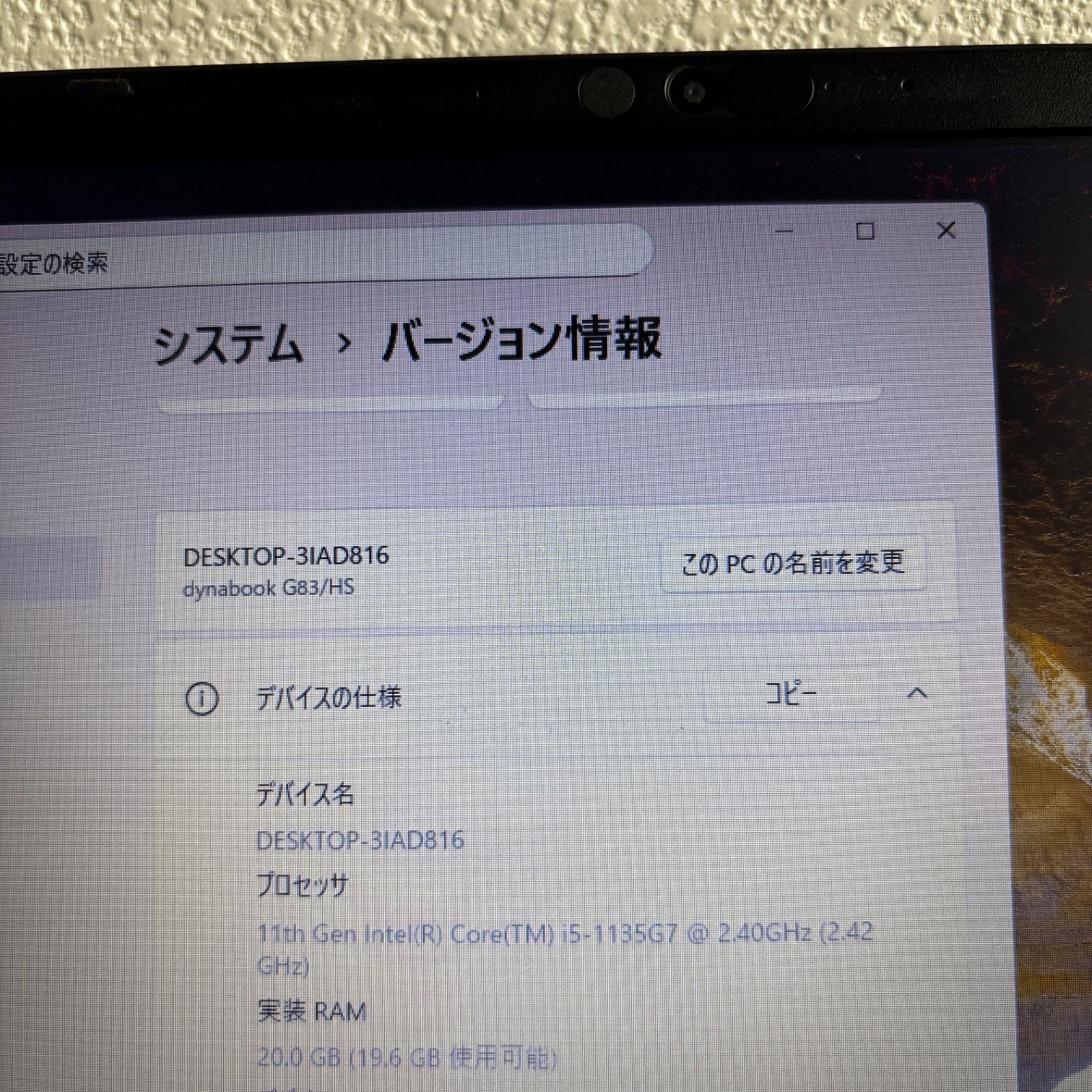 東芝dynabook G 83 HS i 5-1135 7 メモリ20 GB SSD 256 Win 11