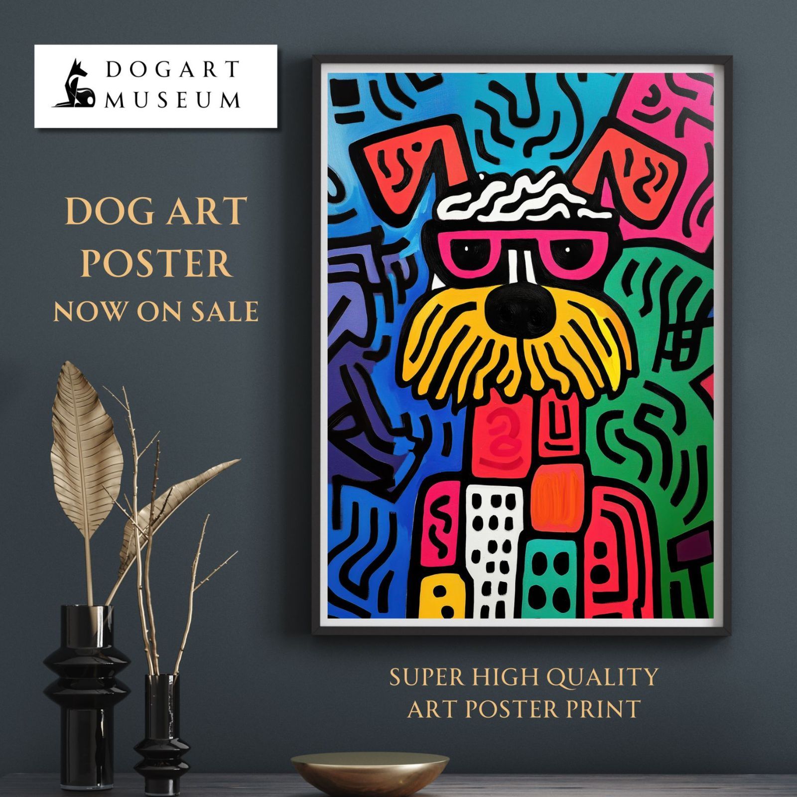 そんな思いを込めた「幸せなドッグライフ」をテーマにした、カラフルでユニークなシュナウザー犬がおしゃれなドッグアートポスターです。