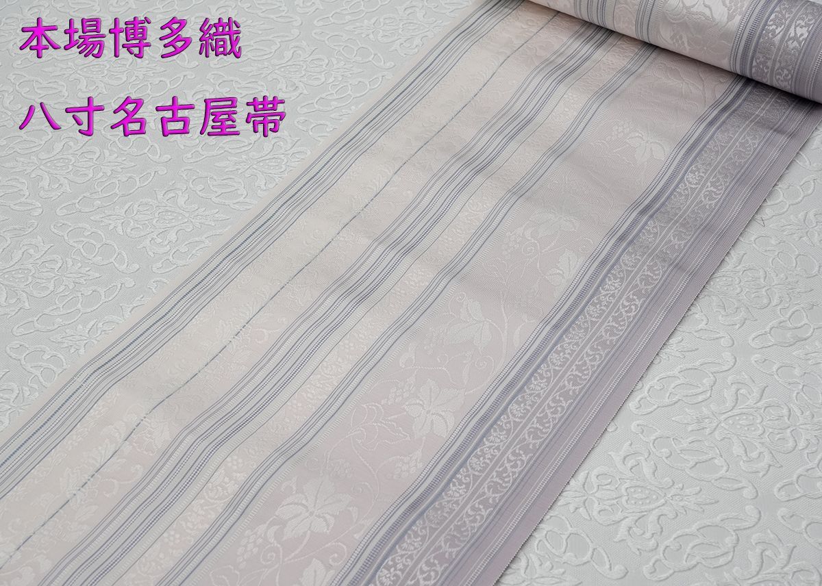 未仕立 博多帯 黒木織物 八寸名古屋帯 葡萄唐草柄 薄紫系 仕立代込