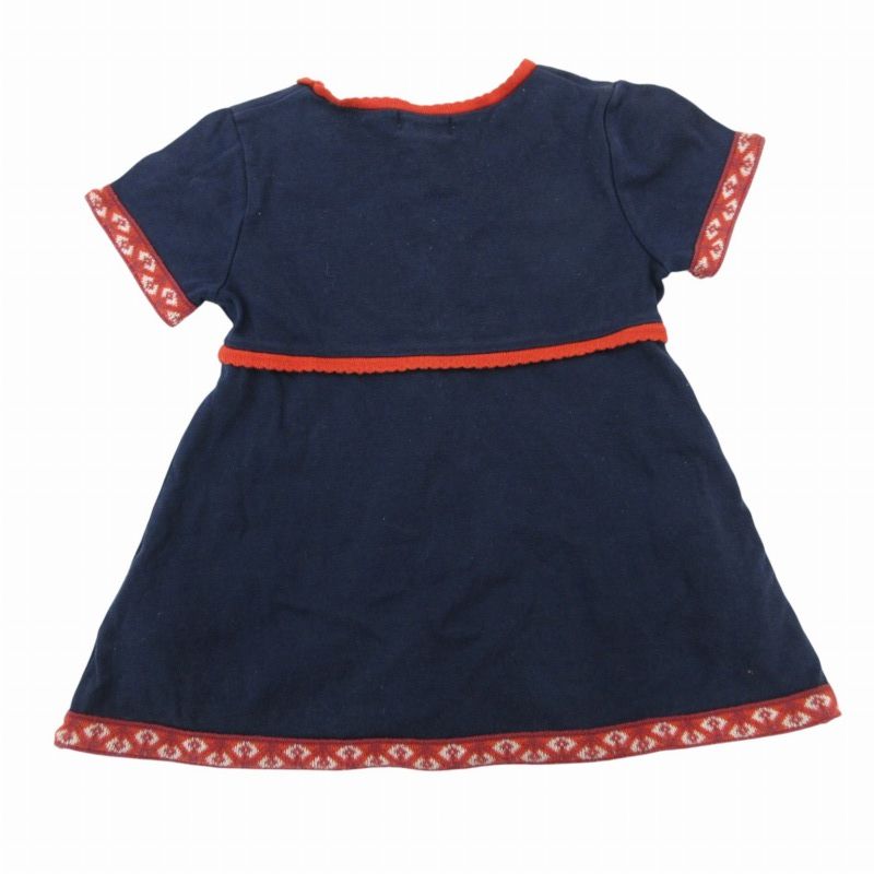 イヴサンローラン YVES SAINT LAURENT ヴィンテージ ワンピース ロゴ刺繍 花柄 刺繍 半袖 キッズ 100 cm 紺 ネイビー FF 0919 GY 09