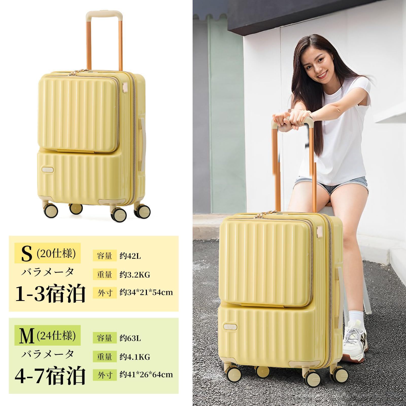 【便利と軽さ】新幹線や飛行機に乗るとき、いつでもスーツケースの前蓋を開けて必要なものを取り出すことができます。20インチの重さは約3.8kgですが、超軽いスーツケースです。サイズ:54*37*23((含?)