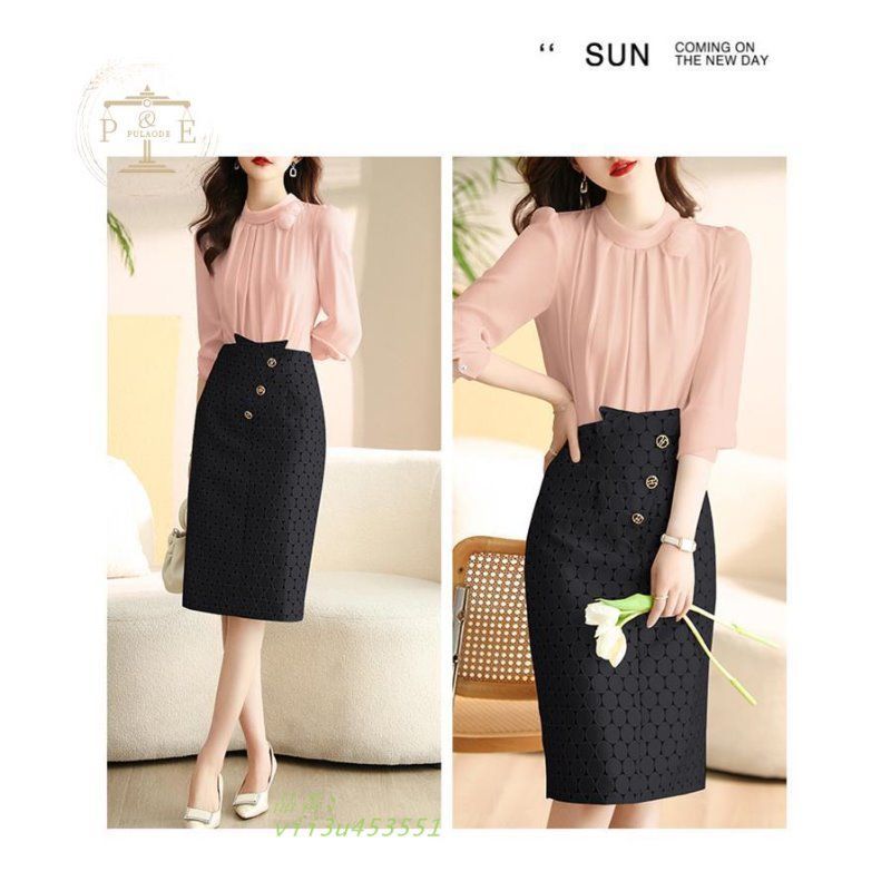 セットアップ スカートスーツ レディース タイトスカート ブラウス 長袖 通勤 シャツ 上下2点セット オフィス フォーマル ハイウェスト ロングスカート vii 3 u 453551