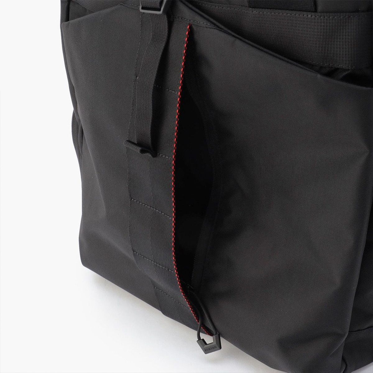 ・メイン収納部と完全セパレートした筒形ポケットをサイドに完備。
