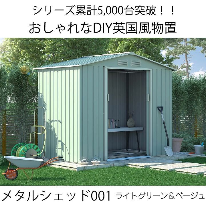 物置 高さ195cm幅213cm奥行127cm 屋外 おしゃれ 小屋 約0.7坪 メタルシェッド 001 ライトグリーン&ベージュ 大型 収納庫 ベランダ収納庫 スチール物置 ガーデン 自転車 倉庫 大型物置 庭 ガーデニング 収納