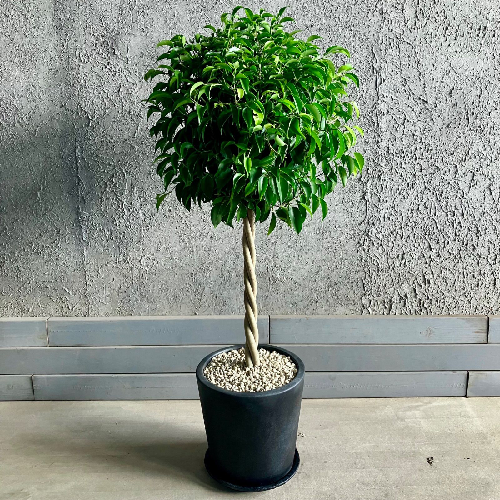 ねじり仕立て フィカス ベンジャミン 10号 テラコッタ鉢植え アンティーク風 受け皿付き