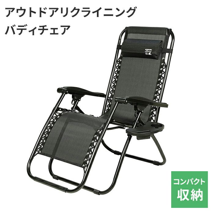 通気性・耐候性・耐水性に優れた無段階リクライニングチェアです。左右どちらにも取り付け可能な便利なサイドテーブル付きで、アウトドアや庭先で快適に使用できます。