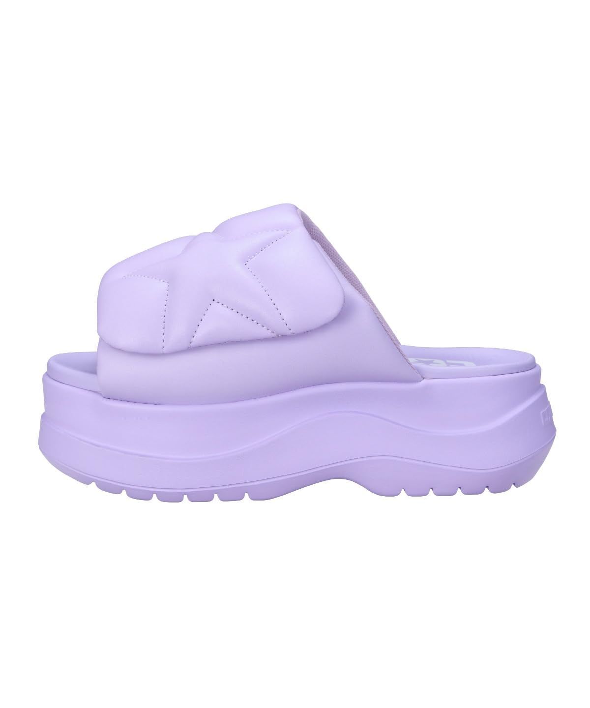 パフ感のある素材をクロスベルトパターンで採用し、包み込まれるような履き心地を実現。柔らかいPU素材のフットベッドとEVAのアウトソールを採用し、履き心地を追求しました。