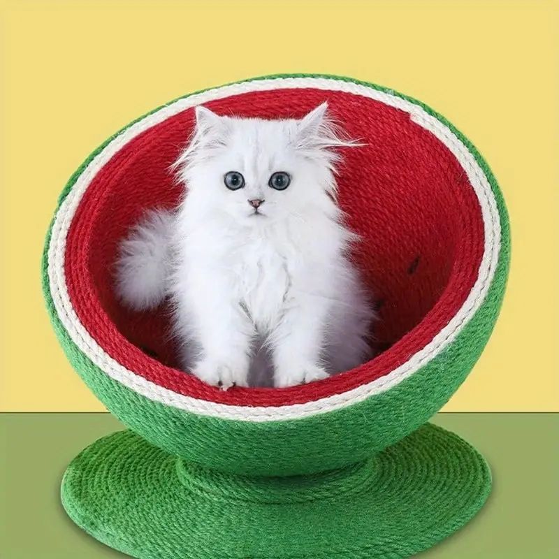 サイザル麻製キャットベッド - 快適でスタイリッシュなペットのための休憩スペーススイカ型猫ベッド&スクラッチャーコンボ 2-In-1 シサルダンボードハウス モダンペット寝袋