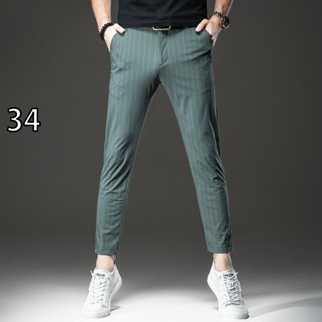 34 メンズ ファッション 服 オシャレ シンプル 大人 かっこいい 大きいサイズ ストリート 紳士服 夏 九分丈 パンツ 薄手 伸縮性 ストレッチ ビジネス スリムフィット ストライプ カジュアル