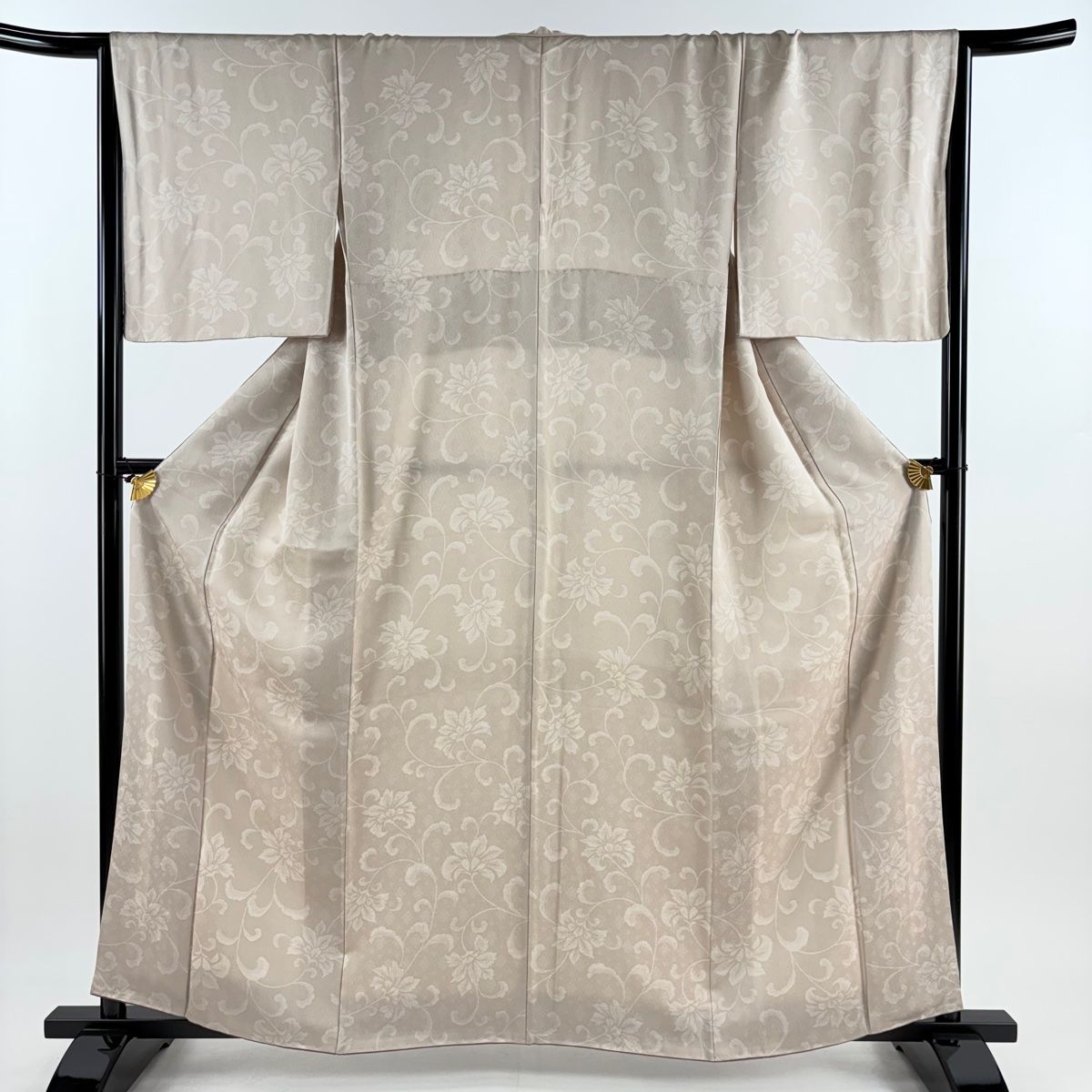 小紋 身丈161 cm 裄丈67 M 袷 花唐草 ピンクベージュ 正絹 秀品