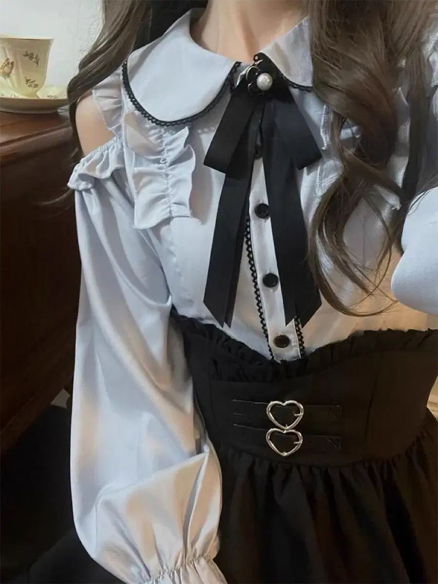 ベイビー ネック オフショルダー 長袖 シャツ トップ レイヤード スカート レディース セットアップ