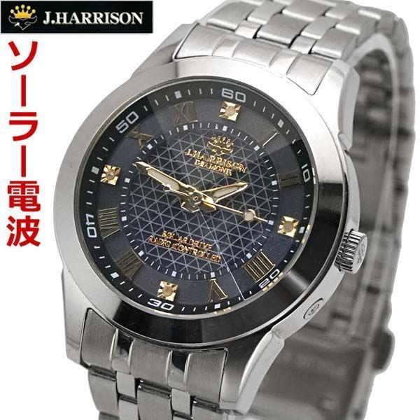ジョンハリソン J. 電波ソーラー 腕時計 天然ダイヤモンド4石付 8面カットクリスタルガラス レディース 女性用 ネイビー文字盤