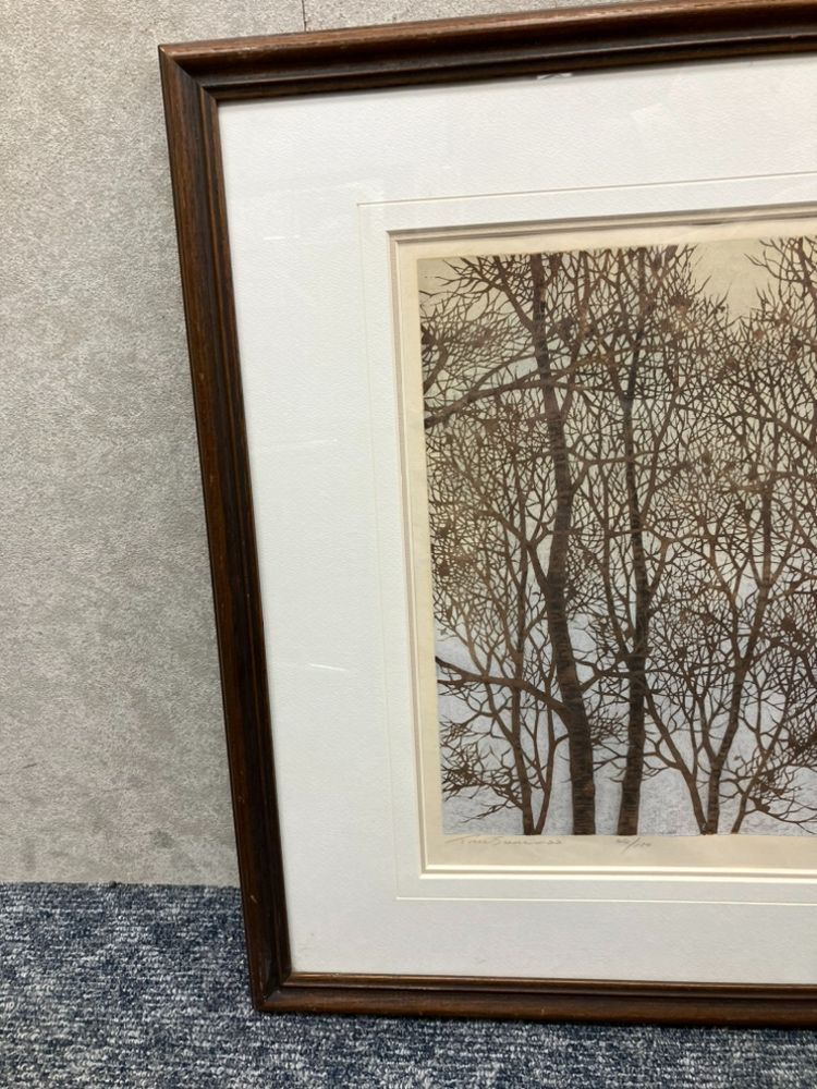 10%クーポン使用可 SK 並木一 tree scene 22 木版画 直筆サイン