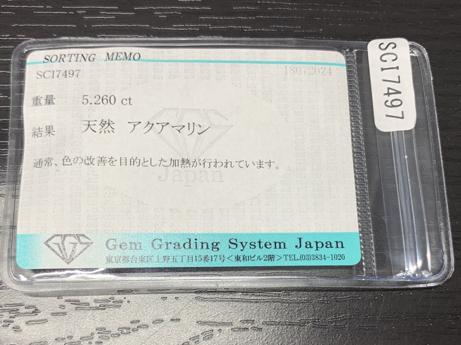 アクアマリン 5.260 ct 宝石ソーティング付き 14.1㎜×10.1㎜×5.9㎜ ルース 裸石 2275 Y