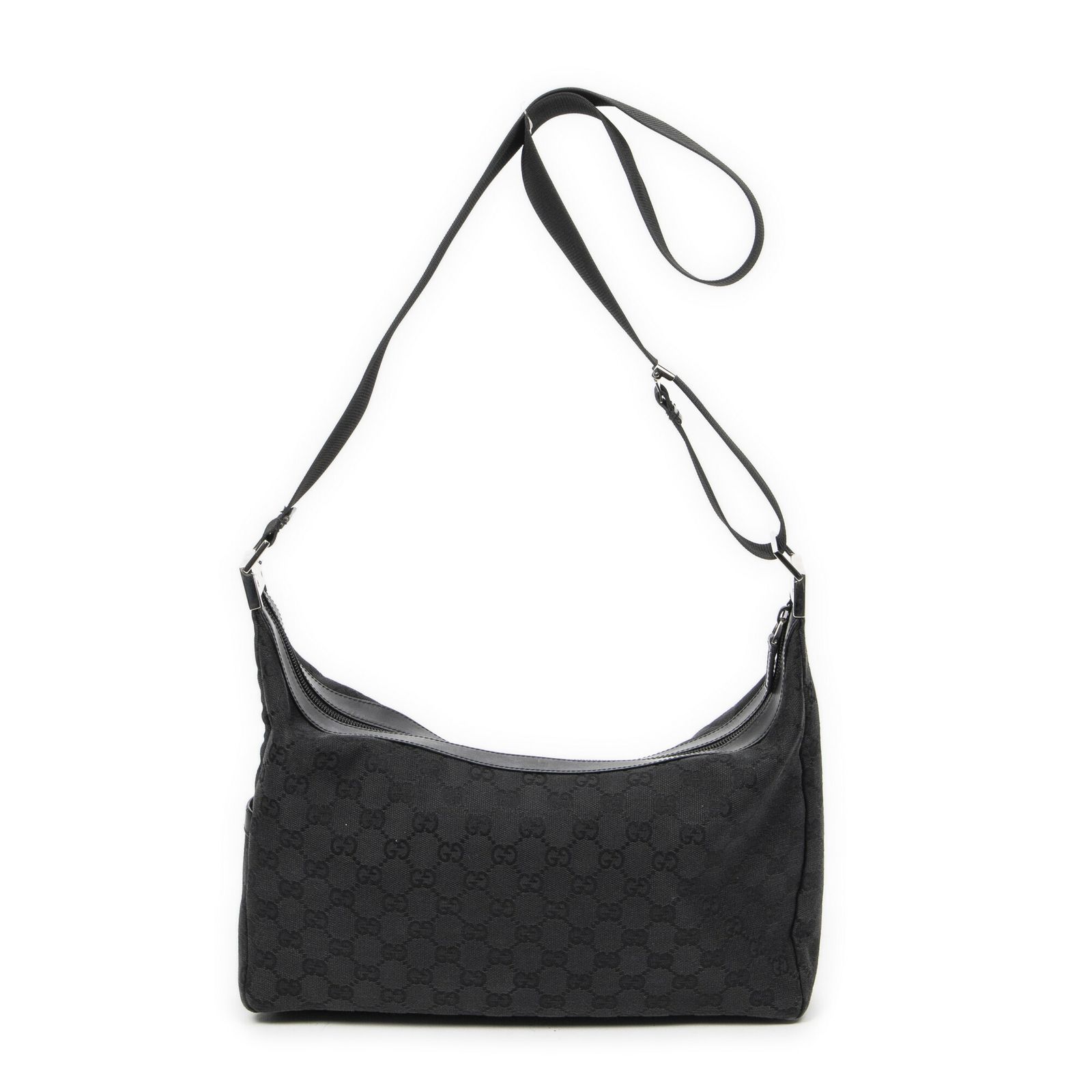 GUCCI グッチスクエアジップメッセンジャー黒GGキャンバスA