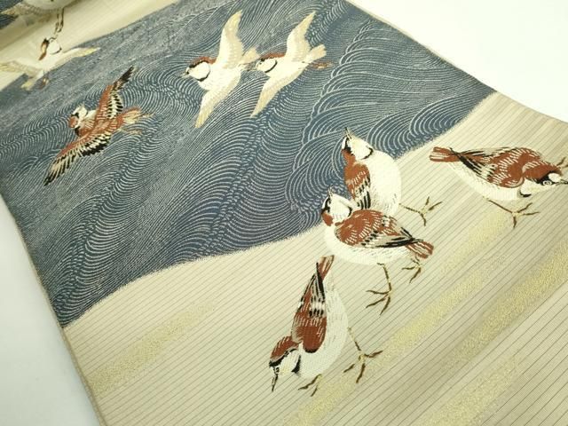 上 夏物 アンティーク 大正ロマン 西陣 川島織物 六通柄 本袋帯 唐織 雀 金糸 kh 5
