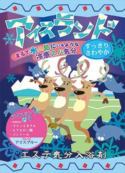 まるで氷の島にいるような冷感スパ気分の分包入浴剤。マリンミネラル、ヒアルロン酸、メントール配合で、湯上り後もすっきり爽やか。アイスミントの香り。