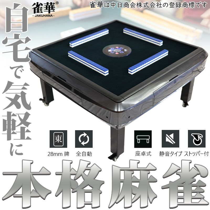 雀華 全自動麻雀卓 座卓式 麻雀卓 座卓 マージャン卓 雀荘牌28ミリ牌 2面 赤牌点棒 静音 ブラック OM B WL 麻雀テーブル 家庭用 家族 ファミリー 娯楽 練習 マージャンテーブル 洗浄ボール 雀荘牌 自動卓 プレゼント付 全自動卓